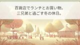 どこに泊まるかを知らされていない三兄弟、クリスマスムード全開の館内、